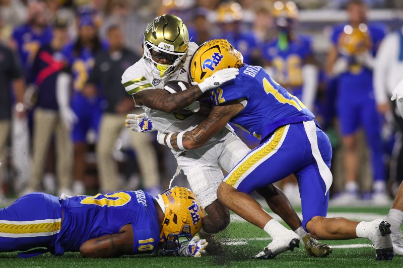 It was win and you’re in the ACC Championship game for the Yellow Jackets on Saturday at home against a Pitt team coming off a Notre Dame thrashing. The Ramblin’ Wreck trailed 28-0 in the second quarter before GT gave the home fans hope with a 14-0 close to the first half. There was more hope before Braylan Lovelace intercepted Haynes King at the goal line and returned it 100 yards for a touchdown. Pitt even survived Pat Narduzzi’s brain-fart fake punt in his own half up 14 points with 5 minutes left to give Jackets fans one last buzz. But finally, Pitt freshman Ja’Kyrian Turner popped for a 56-yard dagger TD to seal it. It seems no one wants to grab the ACC title.
