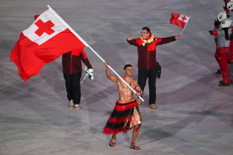 Two years later at the 2018 Winter Games in Pyeongchang, he braved the below-freezing temperatures during the opening ceremony wearing nothing but sandals and a taʻovala (a Tongan mat wrapped around the waist). He also carried his nation’s flag at the 2020 Tokyo Summer Games