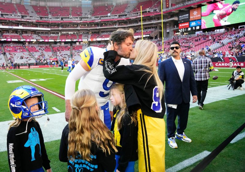 The Rams posted a video on social media showing Stafford’s four daughters, Sawyer, Chandler, Hunter, and Tyler, to celebrate winning the league’s top on-field award.