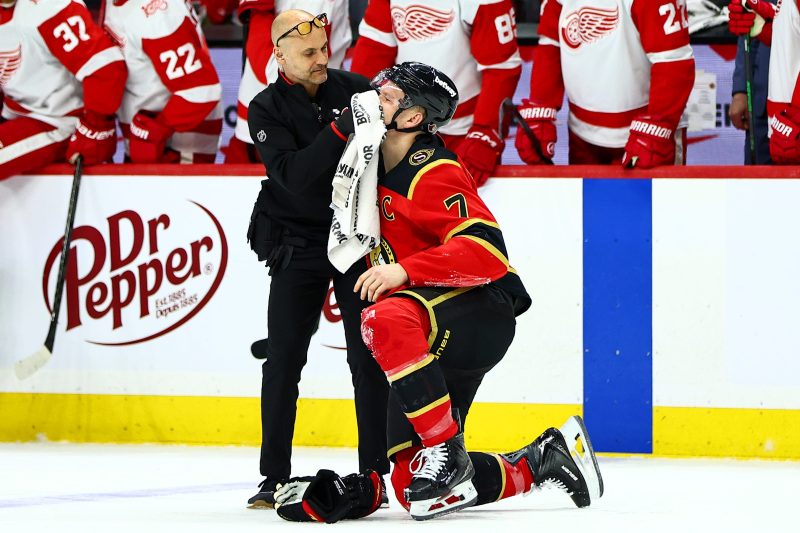 Midway through the Feb. 26 home game against the Detroit Red Wings, Tkachuk had a bloody nose and a trip to the penalty box.